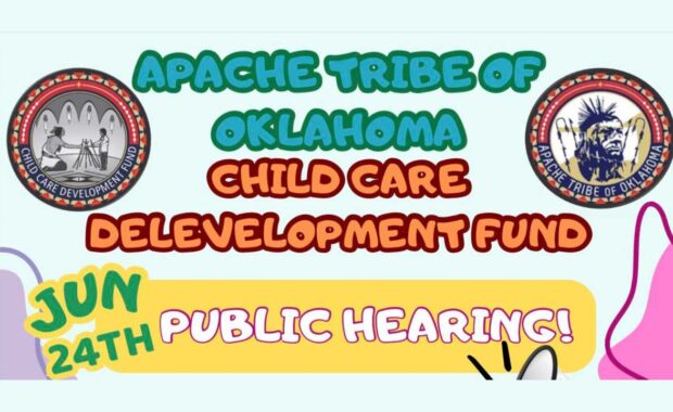 Child Care Development Fund Public Hearing Announced When: June 24, 2025 from 12:00 P.M. - 1:00 P.M. Where: Apache tribe Trading Post ATO